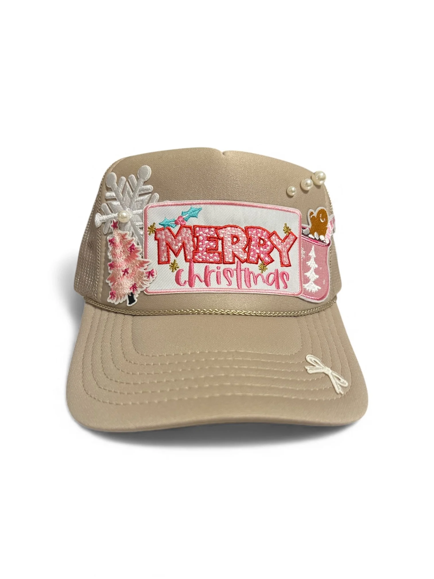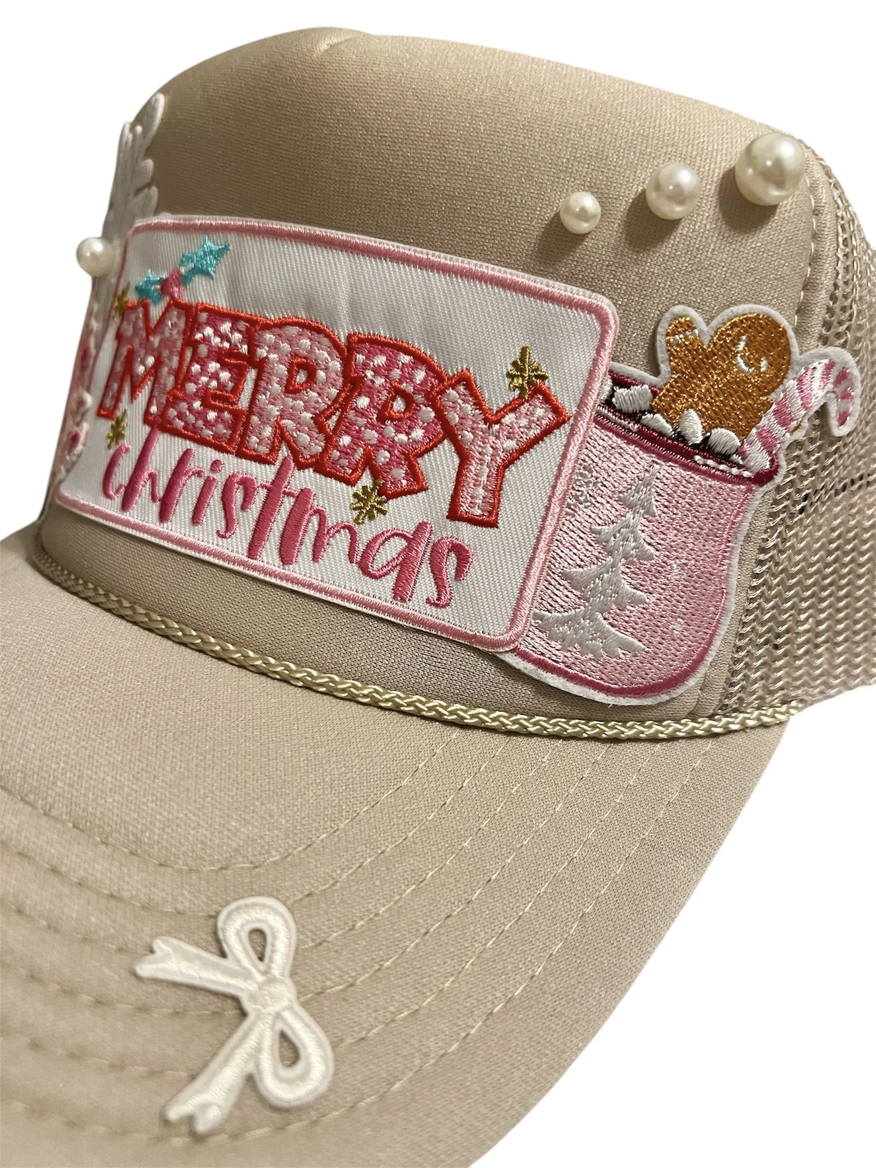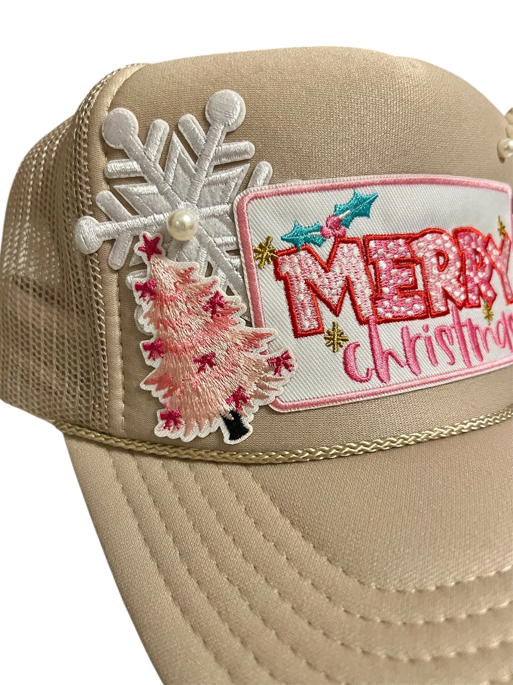 Image 1 of 5 Image 2 of 5 Image 3 of 5 Image 4 of 5 Image 5 of 5 Merry Christmas Trucker Hat with Pearl Rivets Sale Price: $30.00 Original Price: $38.00 Purchase Added!